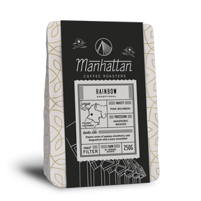 Rainbow is an anaerobic washed Pink Bourbon—a rare varietal grown and processed with precision. The result is a vibrant, fruit-forward cup with standout notes of papaya, strawberry, and dragonfruit.